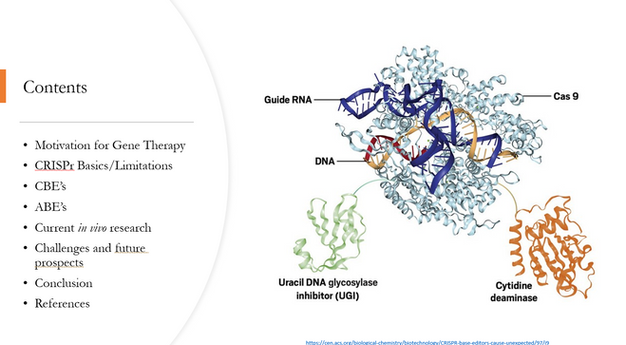 In this final presentation, I provided my classmates with a technical introduction to base editors. I explained the fundamental mechanisms of base editing, its advantages and limitations, current in vivo applications, and considerations for potential therapeutic use. While many of my peers were familiar with CRISPR, they were intrigued by the potency and precision of base editing.